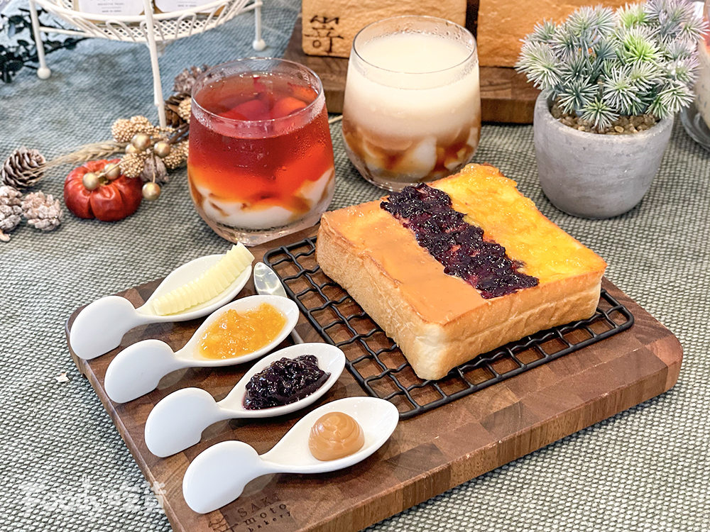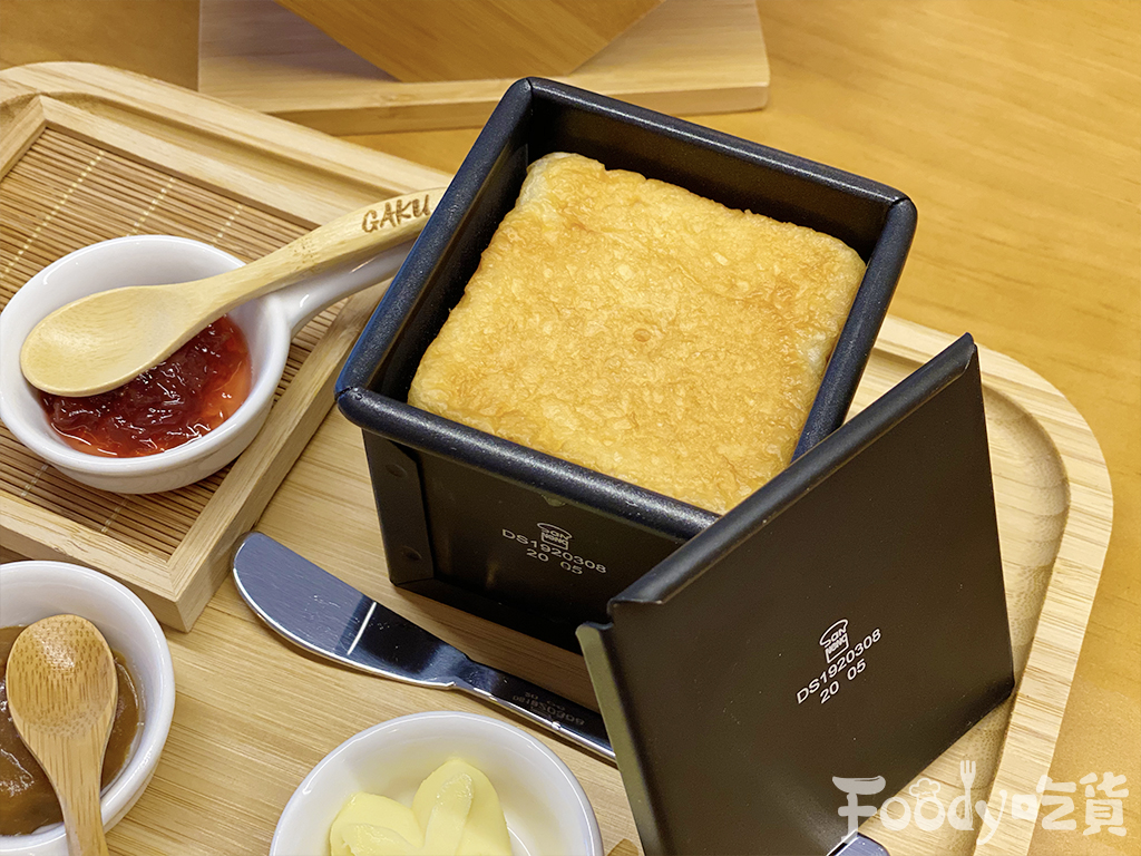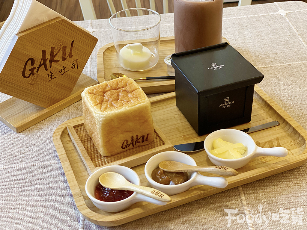 ▼「GAKU 生吐司」使用北海道高級牛乳,不加一滴水下去製作的軟綿生吐司,濕潤的口感連邊邊都好吃到一口不留~除了生吐司本體必須推,這裡的手工果醬也很美賣!小編自己私心很喜歡XD 淡淡的果實甜味配上生吐司濃郁的牛奶香氣,不知不覺就會吃完一整個啦!除了原味的鮮奶生吐司,老闆也會製作其他口味,例如:紅豆、豆漿等等,多款風味都各自有擁護者呢!