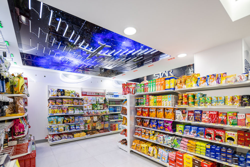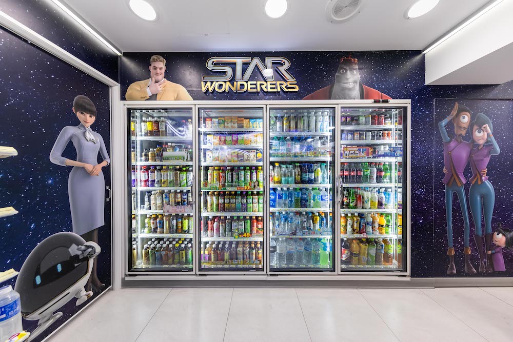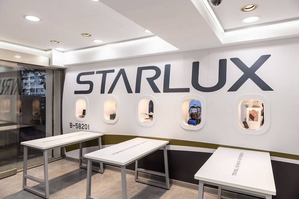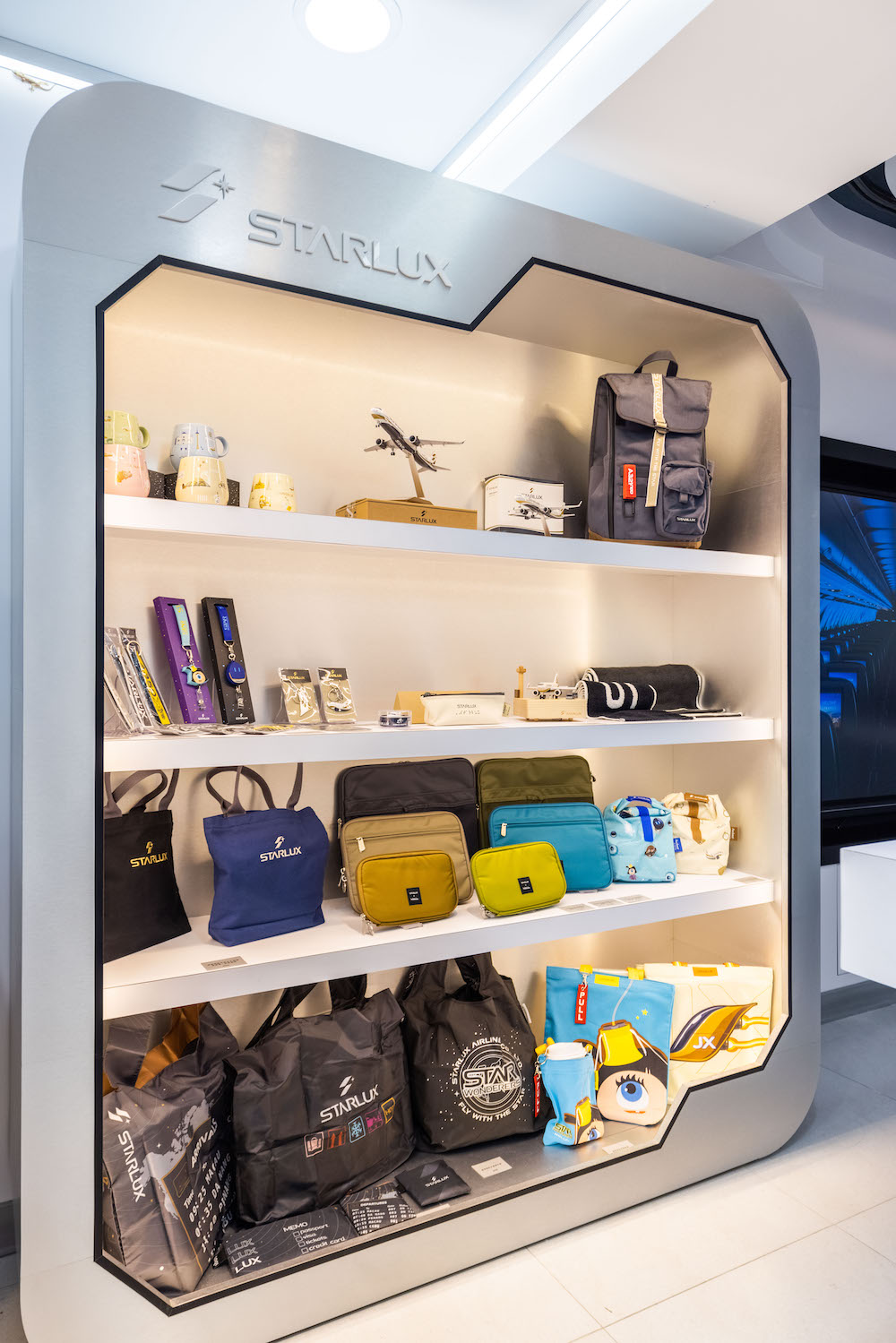 ▼櫃台旁的螢幕播放B-58201初號機抵台花絮、A321 neo組裝/內裝影片以及網路討論度超高的「STARWONDERERS 星探者」機上安全影片,正前方牆面更設置世界時鐘,門市人員更全員穿上星宇空服員圍裙,讓人一秒偽出國!門市貨架區則以星宇航空「STARWONDERERS星探者」為設計概念,天花板採用星空飛行軌道搭配燈光流線,創造充滿神祕氣息的宇宙氛圍,等待著地球人來一探究竟。