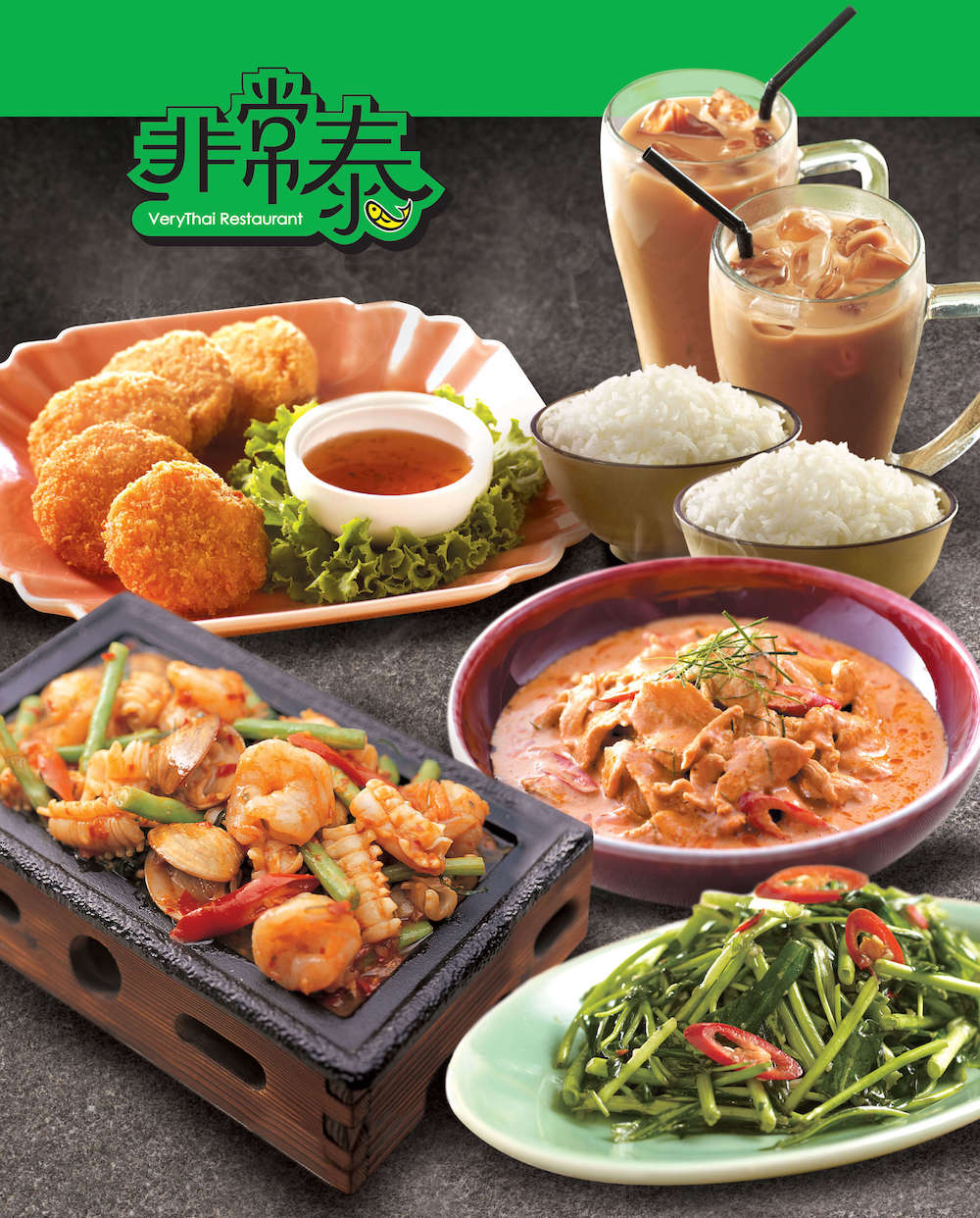 ▼最時髦的泰料品牌「非常泰」,提供4道招牌菜色與飲品、白飯:金錢蝦餅、鐵板香辣海鮮、椰汁炒牛肉/椰汁炒雞肉(擇1)、蝦醬空心菜/蝦醬高麗菜(擇1),搭配白飯2碗及泰式冰奶茶2杯。