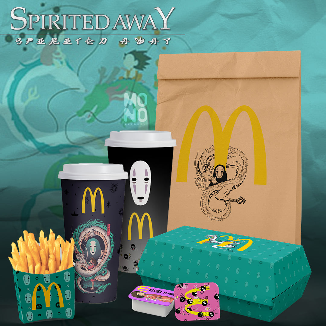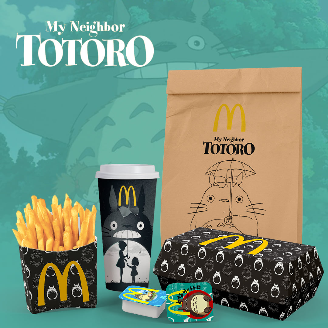 ▼此外,紅遍全球的吉卜力《龍貓》撐傘造型現身,還有《神隱少女》中的無臉男、白龍也都出現在麥當勞包裝上,可愛的小吉祥物煤炭球與主角千尋則是出現在糖醋醬包裝上,這樣就到齊惹~