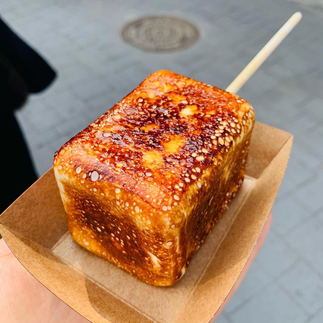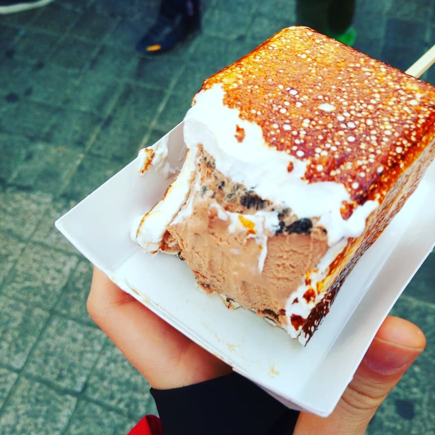 ▼將一整個長方立體棉花糖,中間塞入甜蜜口味的冰淇淋,再把它整~根棉花糖拿去炙燒,將外表烤到金黃焦脆,就可以大口咬下摟!郎客啊哩抗抗!烤到金黃的棉花糖,趁還有微微餘溫的時候咬下,外表焦脆內裡柔軟,還有稍稍會刊~西的感覺,第一口就已經這麽療癒~~(*゚∀゚*)