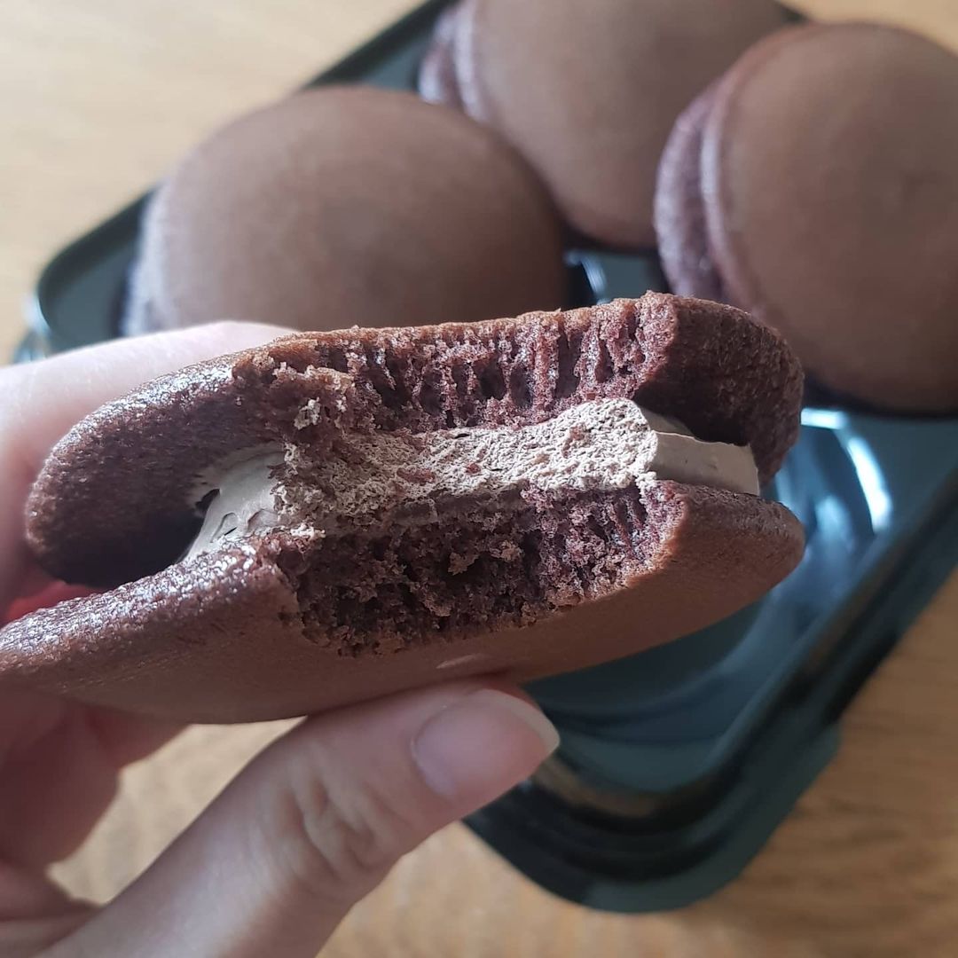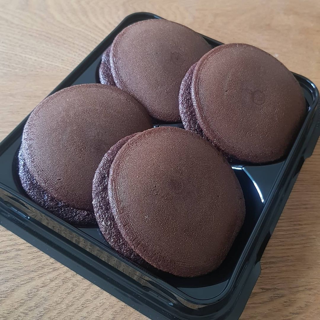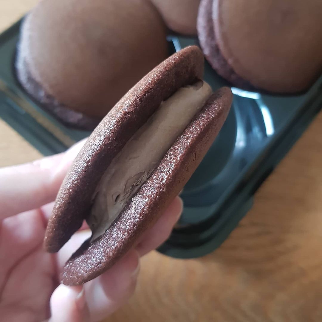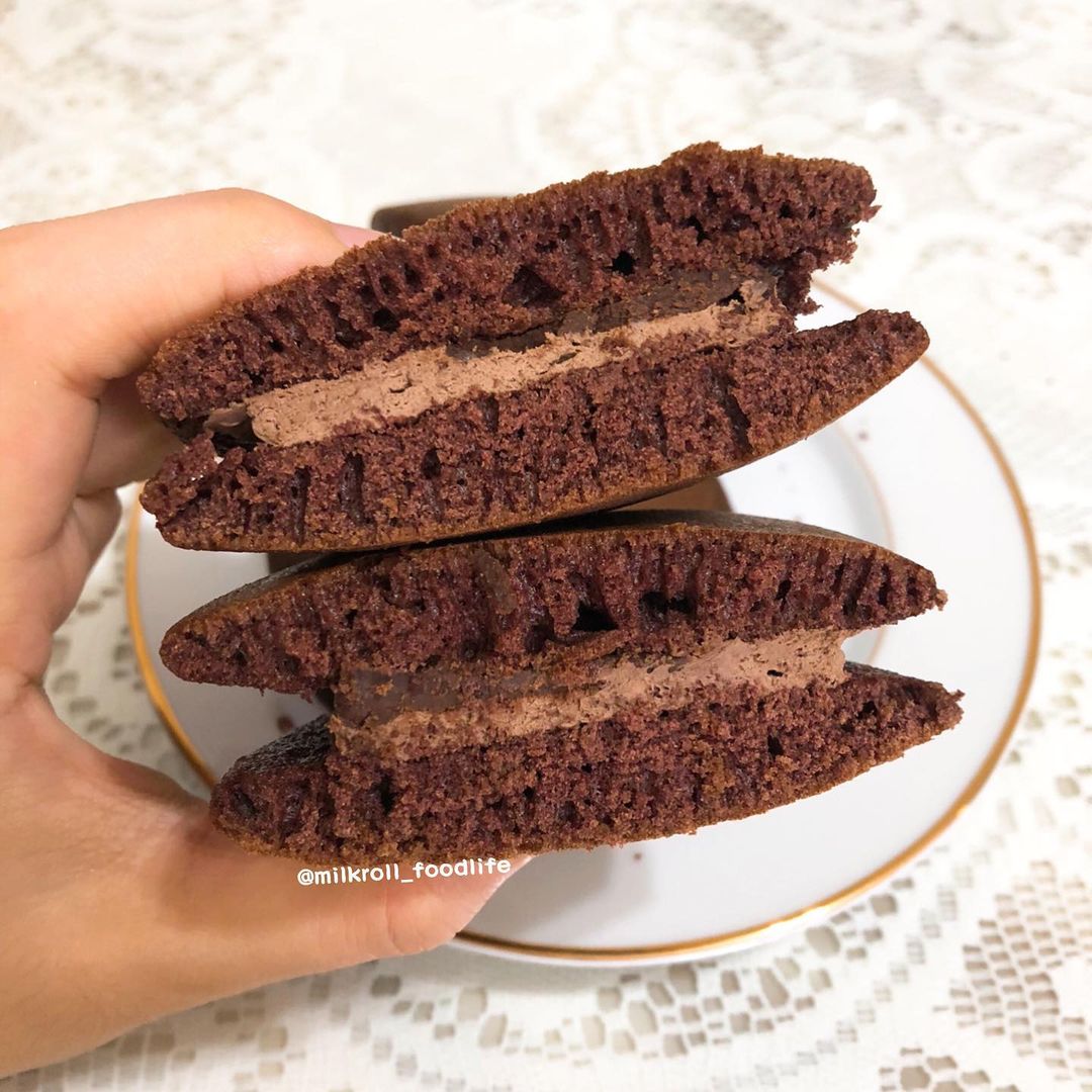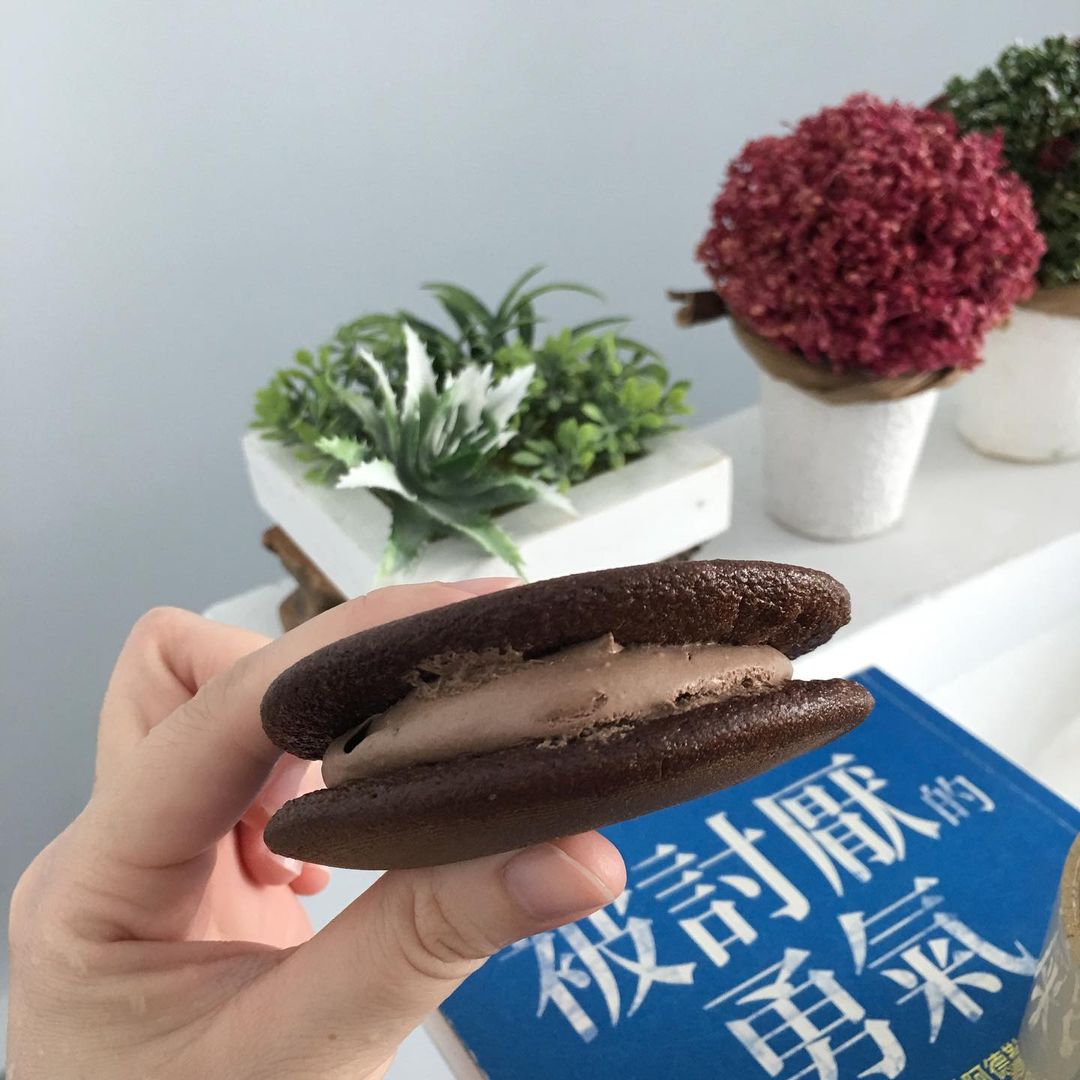 ▼喜歡巧克力的粉粉們絕不能錯過這款,外皮的部分是巧克力蛋糕,充滿空氣感不會太乾也不會過度甜膩,中間的夾心餡料則是由巧克力奶油尬上巧克力製作而成,冷藏吃起來冰冰涼涼,每個環節都配合的有夠好的啦~如果把它冰在冷凍,中間的餡吃起來則會有點冰淇淋的口感,就像在吃銅鑼燒冰淇淋一樣,一款甜點兩種吃法,而且一盒4個只要$69元,CP值真的有夠高~~~