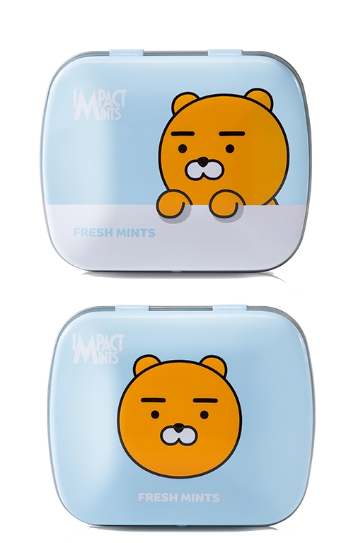 ▼「Impact無糖薄荷糖」(65元),呆萌KAKAO FRIENDS聯名款,有水蜜桃KAKAO、薄荷KAKAO兩種口味,萊恩、Apeach跳上包裝超古錐~
