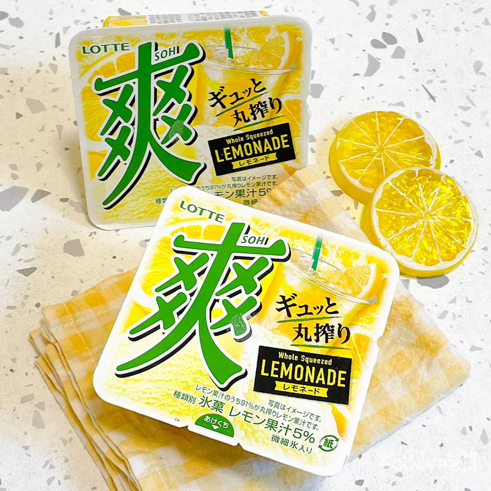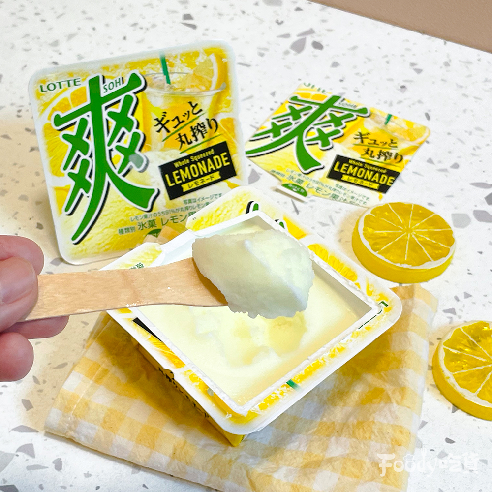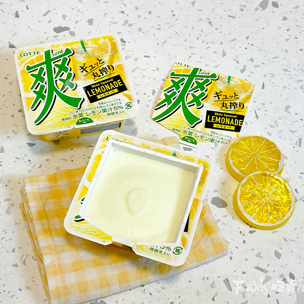 ▼LOTTE爽冰淇淋新口味「丸榨檸檬」,淡淡的檸檬黃一看就清涼,加入5%檸檬果汁,開啟包裝後湊近一聞,還能感受到清爽的檸檬果香。