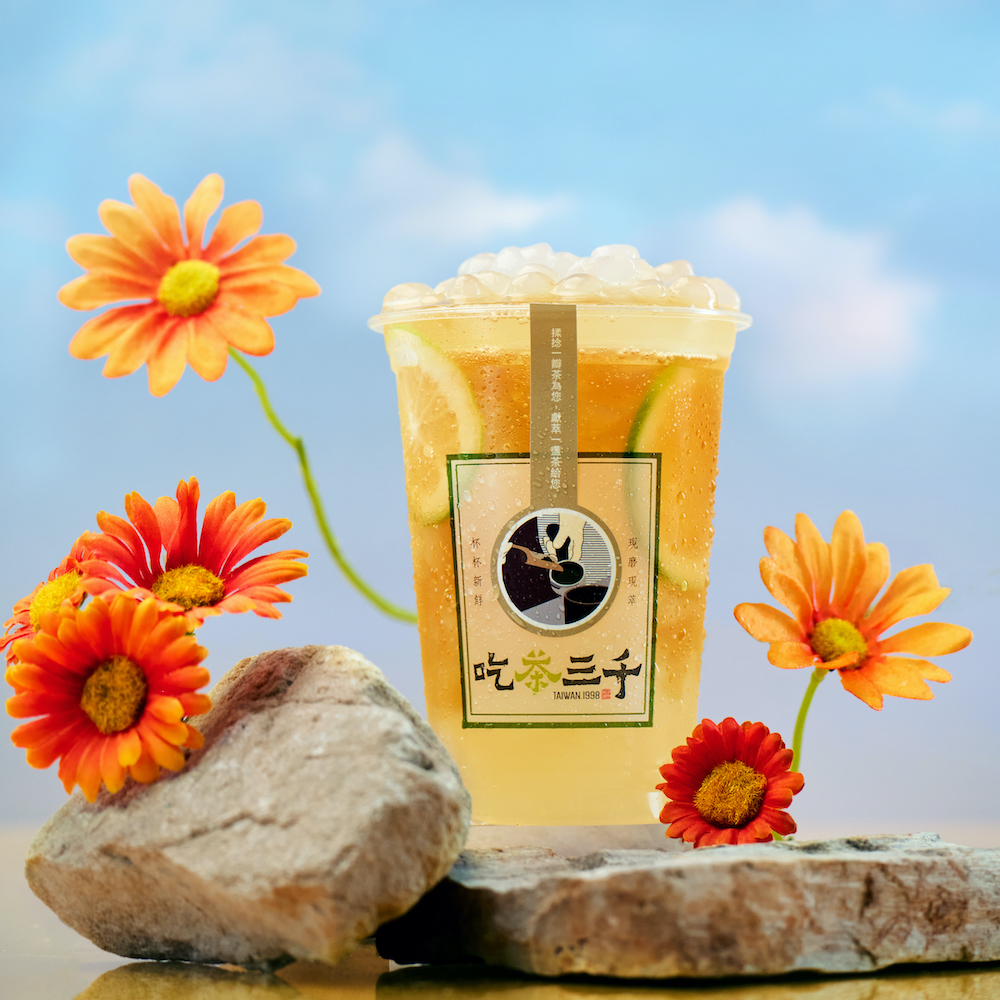 氣泡水搭配吃茶三千超強的茶底做成茶飲特調,再加料纖玉菓子的超Q彈口感,這系列絕對好喝的啊!