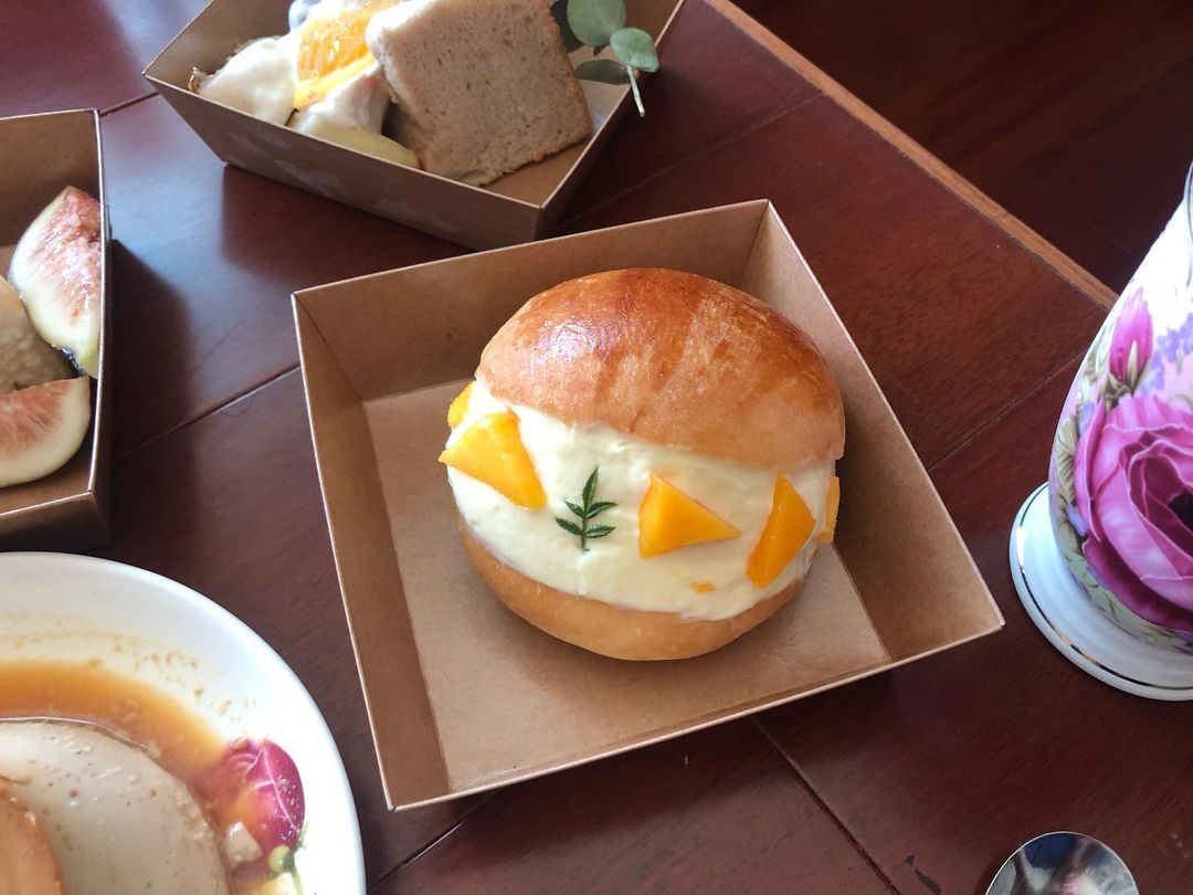 ▼「微間素生」,位於板橋樹林附近別具韻味的咖啡廳,販售超好吃的芒果小圓包!說到夏天的水果當然要吃芒果,將香甜的芒果與百香果鮮奶油做搭配,濃郁的奶香裡又有水果帶來的清爽感,滿滿的新鮮芒果也不會過度甜膩,將傳統的羅馬生乳包結合台灣水果熱帶風味,口味非~常別具特色啊!