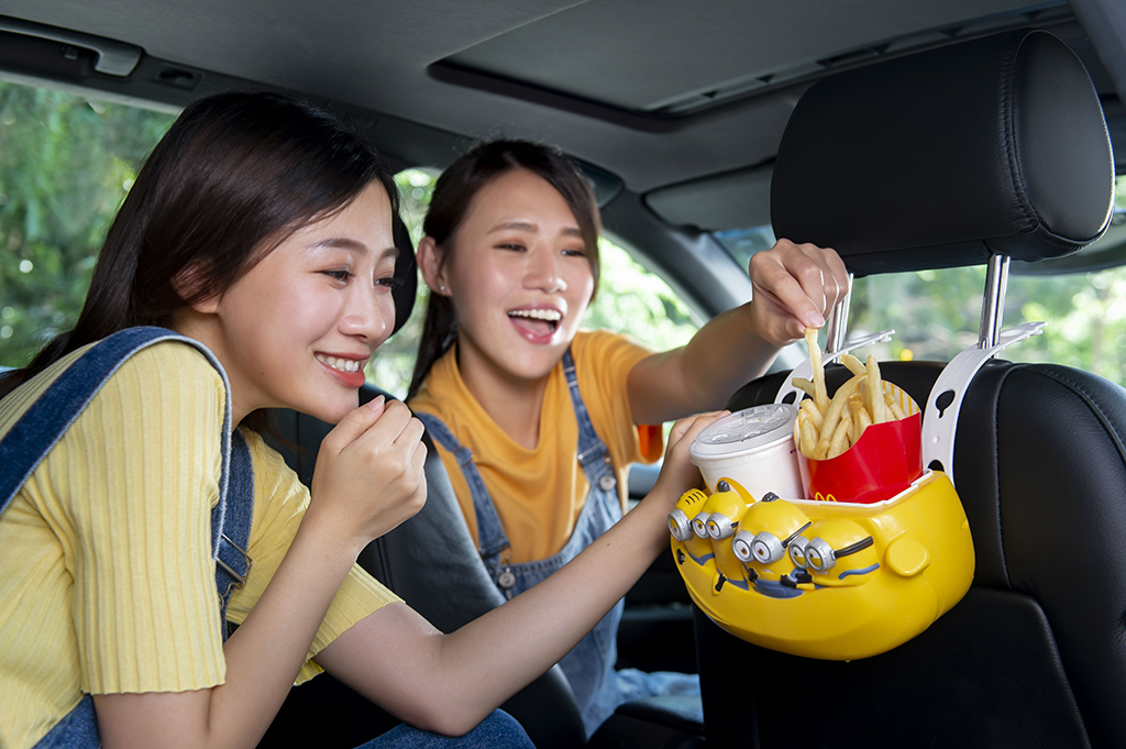 ▼這款商品如今日本麥當勞也復刻回歸,坐著香蕉船的小小兵經典造型再次登場,「手提」、「車掛」、「平擺」三型態超便利,在車上也能開心爽吃麥麥~