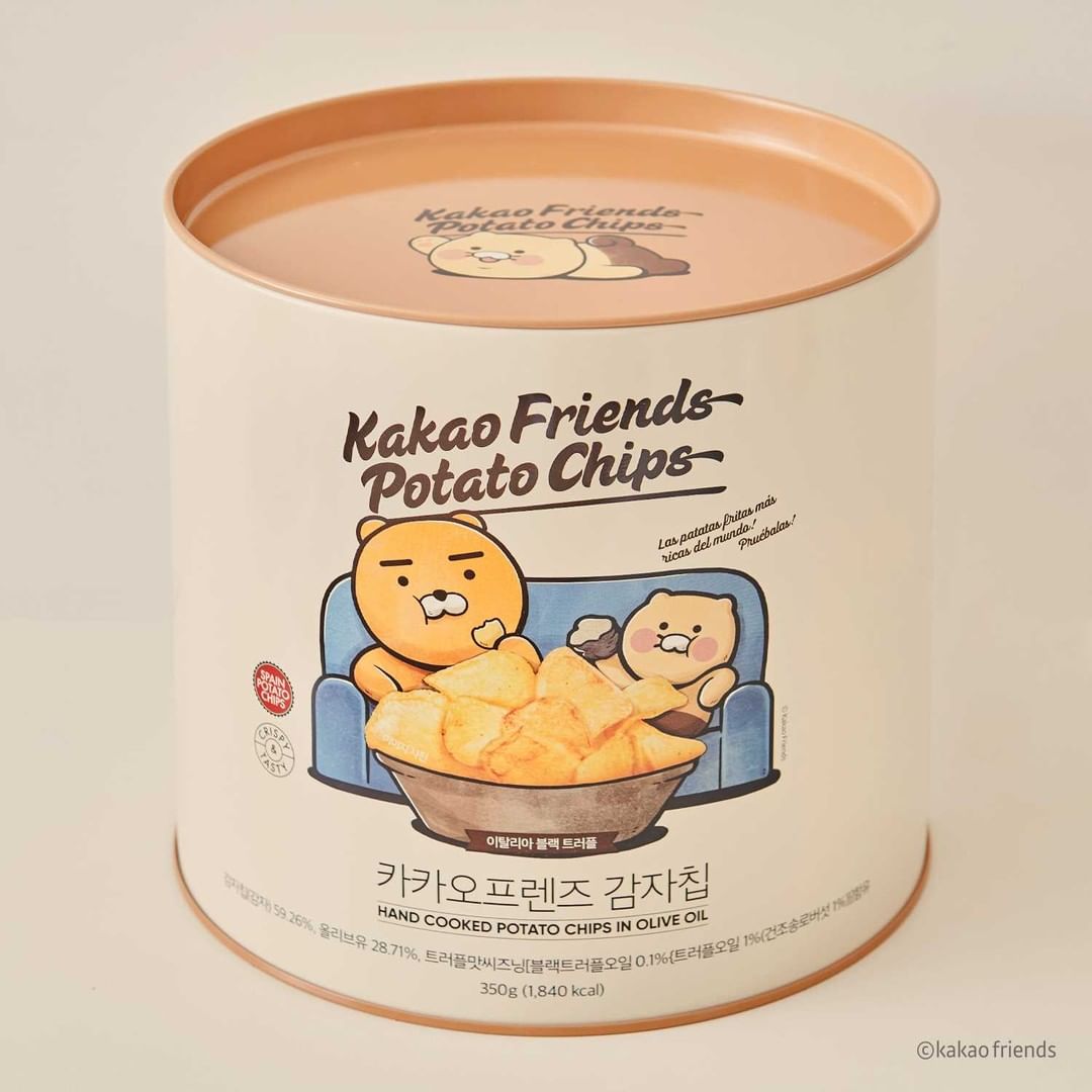 2021年07月06日居家耍廢的日子,最喜歡窩在軟軟的沙發上一邊追劇一邊吃洋芋片,當個稱職的沙發馬鈴薯就是這麼快樂啊各位!但是捏,這個沙發馬鈴薯也是有分等級的,端看你的零食來區分你484一顆高級的沙發馬鈴薯(笑)都要吃零食了當然要吃的美味、吃的可可愛愛~這時候哩就需要這桶-「Kakao friends 油漆桶洋芋片」,讓可愛的萊恩跟春植一起與你度過慵懶的時光ヽ(●´∀`●)ノ