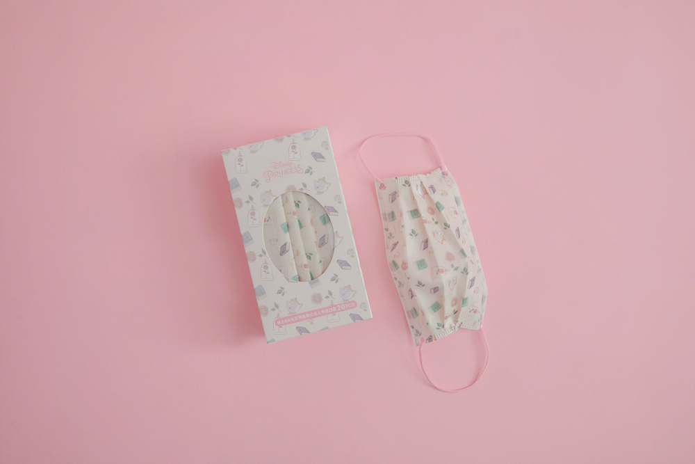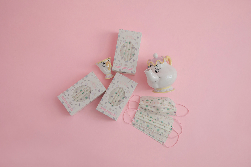 ▼首次登場的「迪士尼公主系列」口罩,以《美女與野獸》中茶壺媽媽、小孩阿奇杯等夢幻可愛的元素佔據整體口罩設計的版面,特別選用柔和的「淡鵝黃色」作為襯底,同時也是貝兒的代表色,非常吸睛。