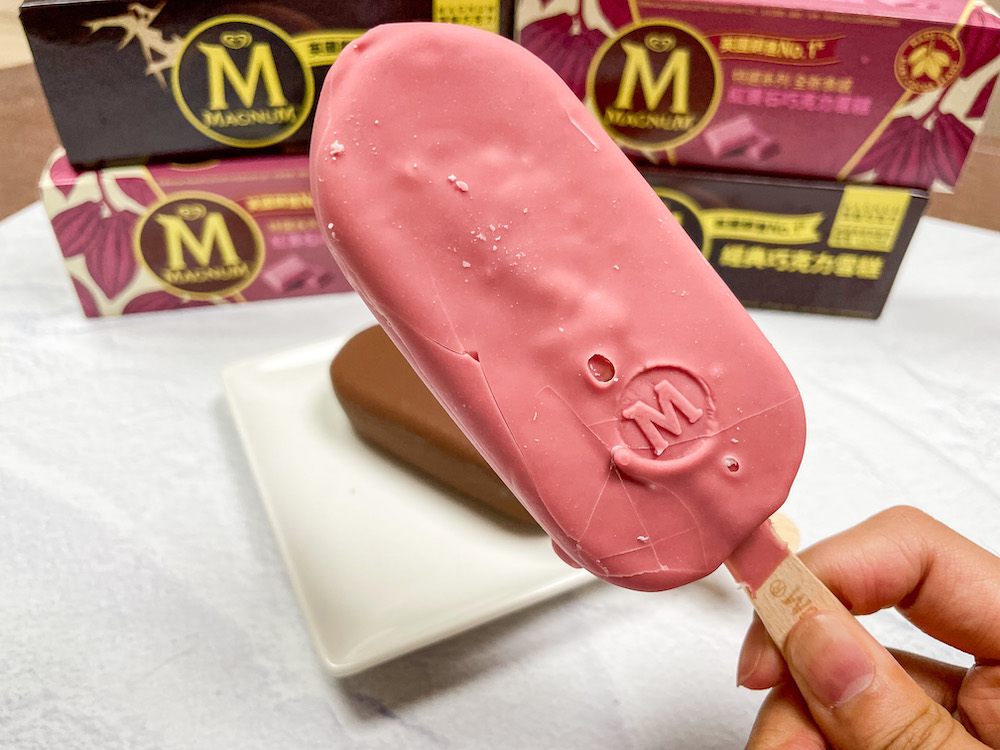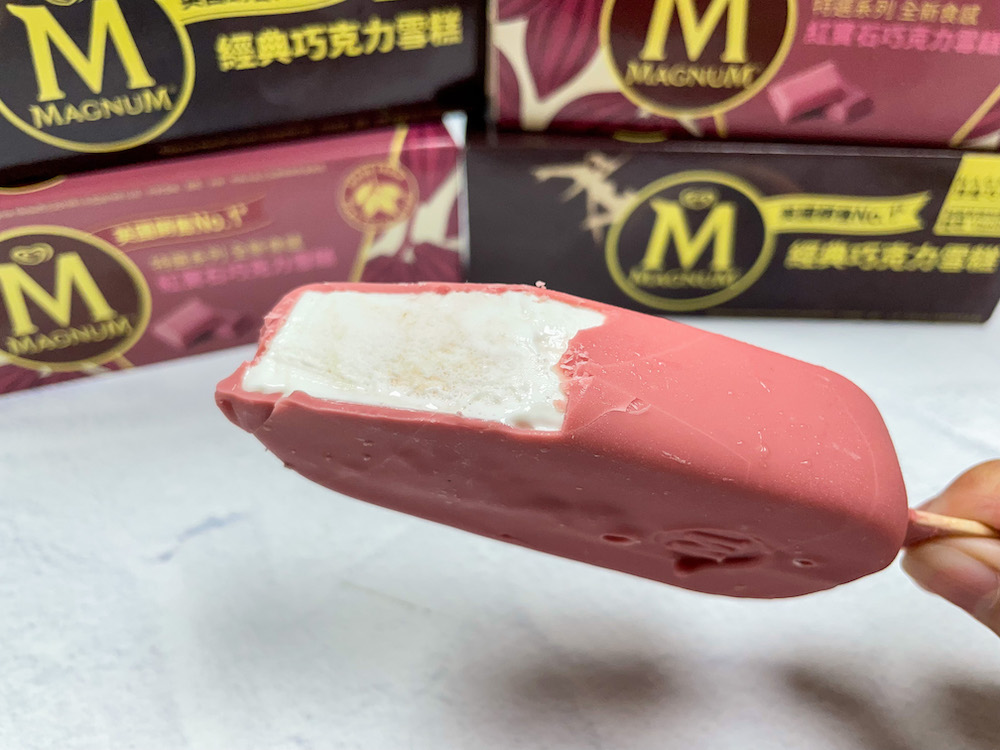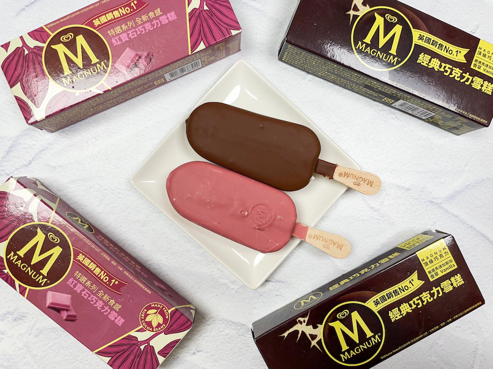 ▼想要一點奢華享受,則推薦歐洲銷量第一雪糕品牌Magnum,推出「經典巧克力雪糕」(69元),以及「紅寶石巧克力雪糕」(89元),世界首創使用紅寶石可可豆製作的雪糕產品,外層搭配酸甜覆盆子果醬,呈現具有質感的粉色系冰品,絕對能為居家甜點時光增添儀式感。