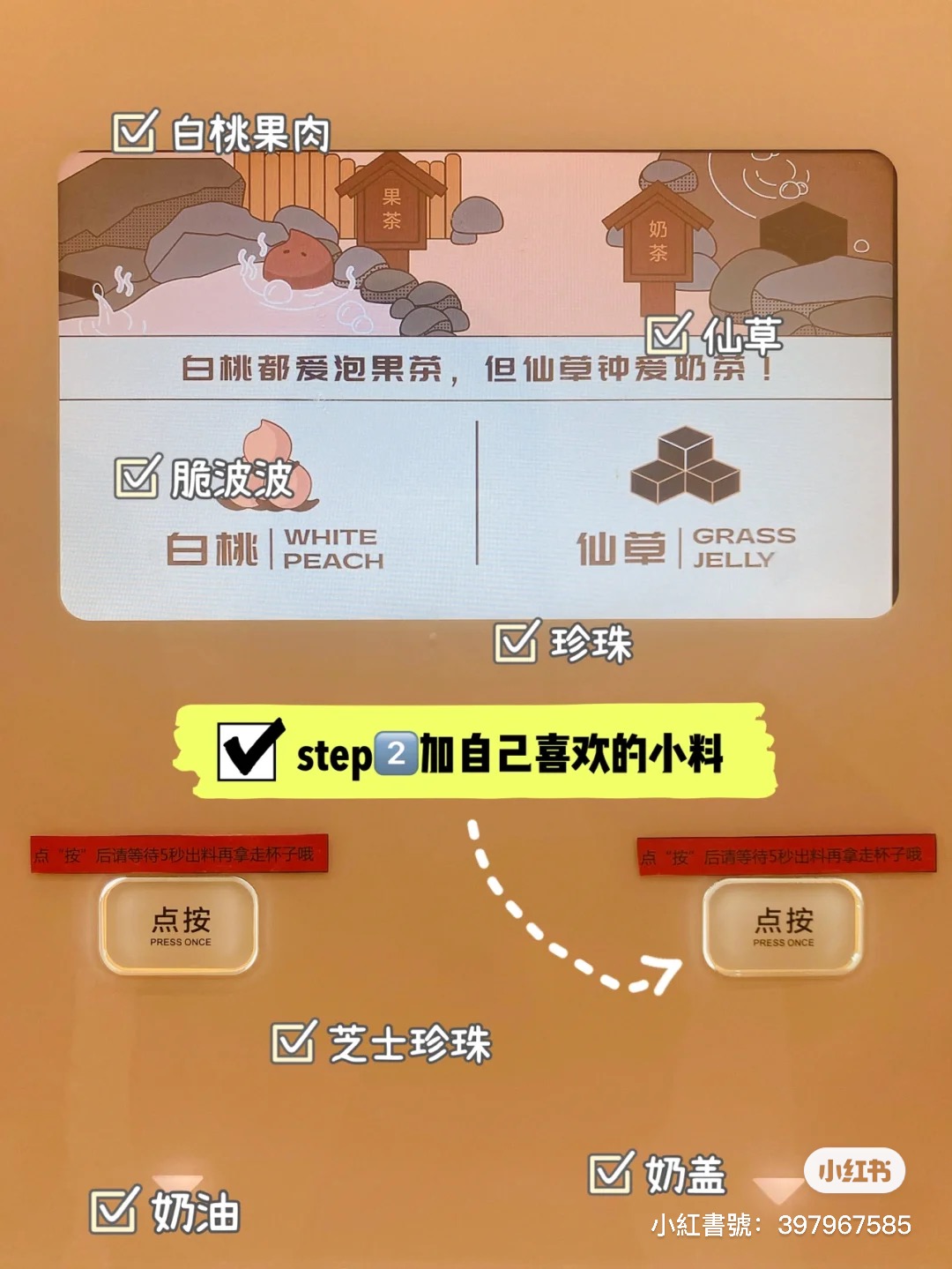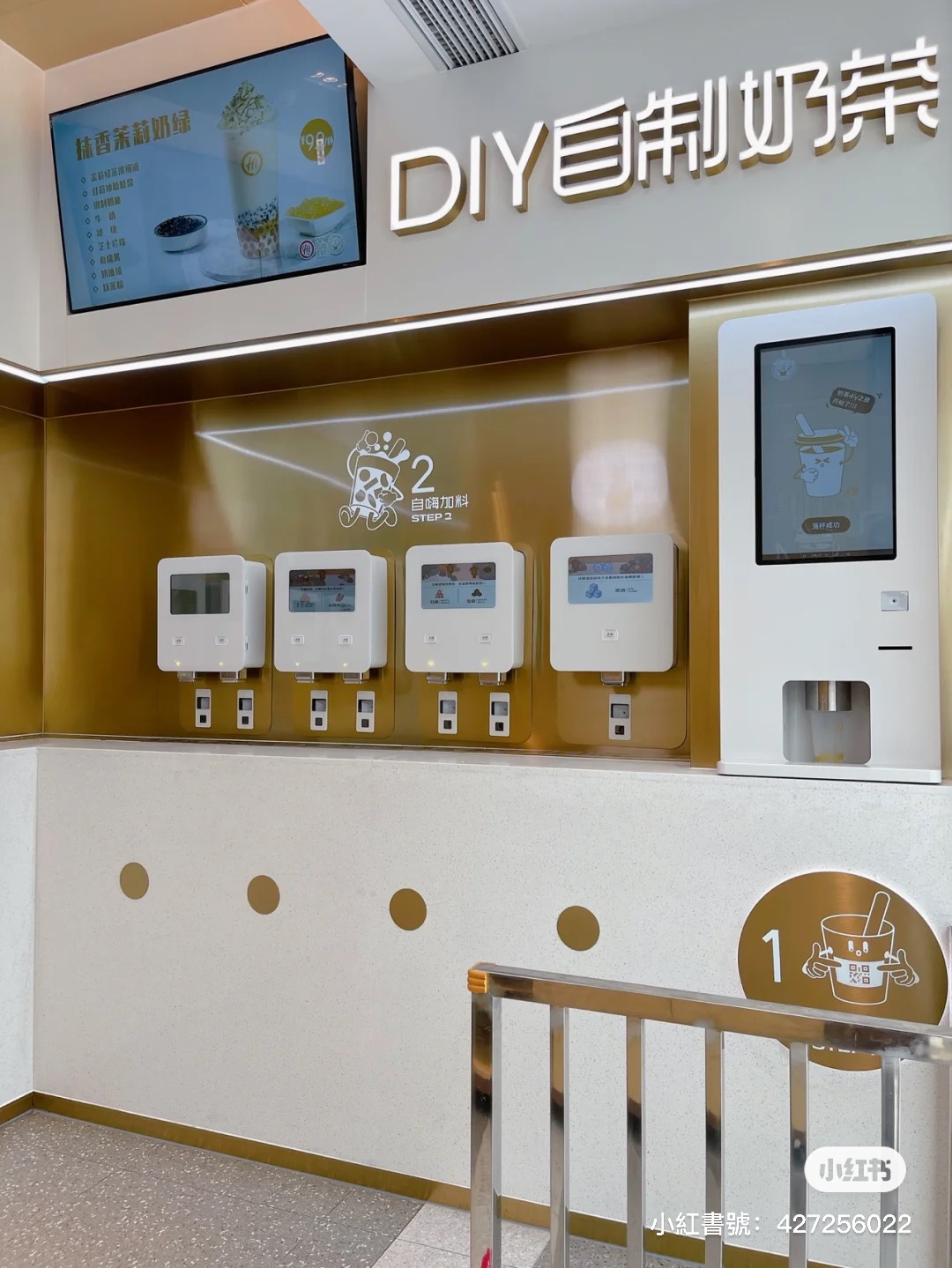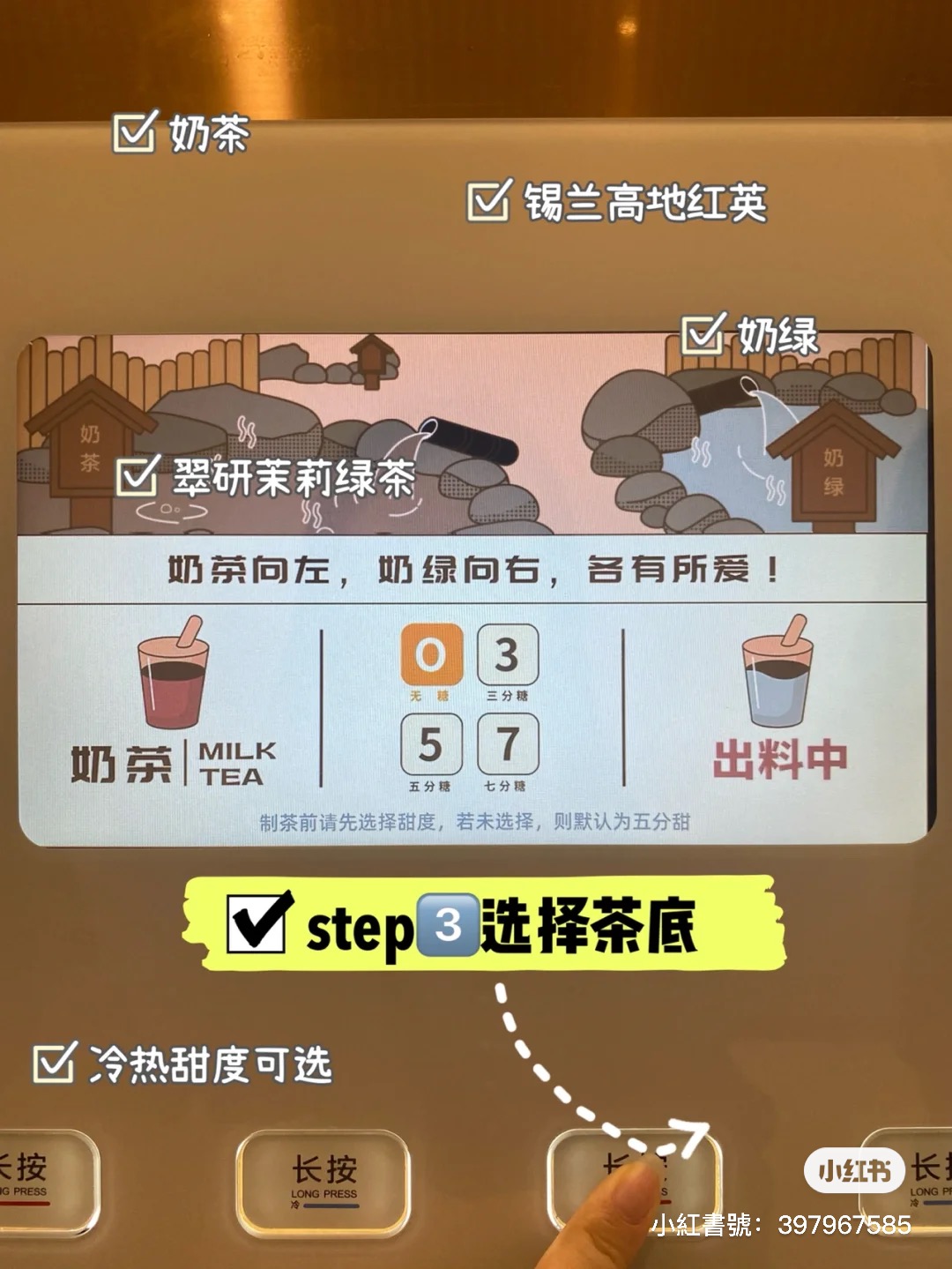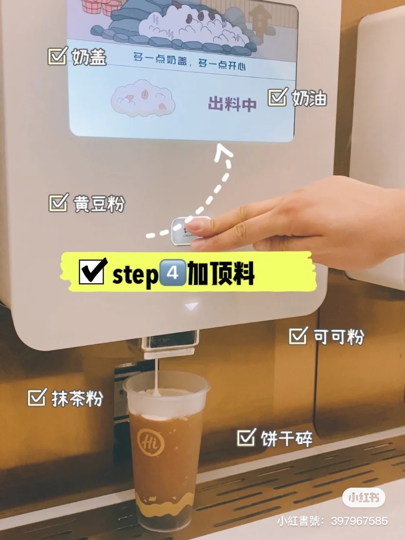 ▼自製奶茶步驟非常簡單,掃碼取杯後,就可以選擇想要的底茶、配料、茶頂(奶油or奶蓋)甚至還有茶頂配料可以選擇~想怎麼搭就怎麼搭,甜度冰量也是能調整的,每個人都可以調配出專屬於自己的飲品!