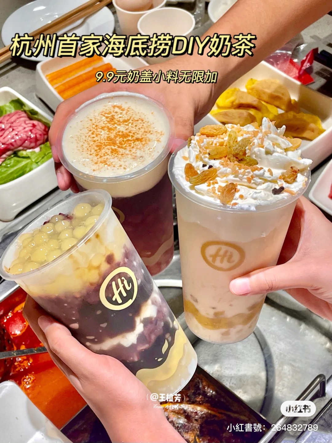 ▼海底撈全新的「DIY撈撈奶茶」主推自製奶茶加到飽方案活動。吃火鍋配奶茶已經不新奇了各位,就是要自己DIY才有遊戲體驗啊是吧~不過如果你真的不餓的話,不用進去吃海底撈其實也能購買啦~(^o^)v