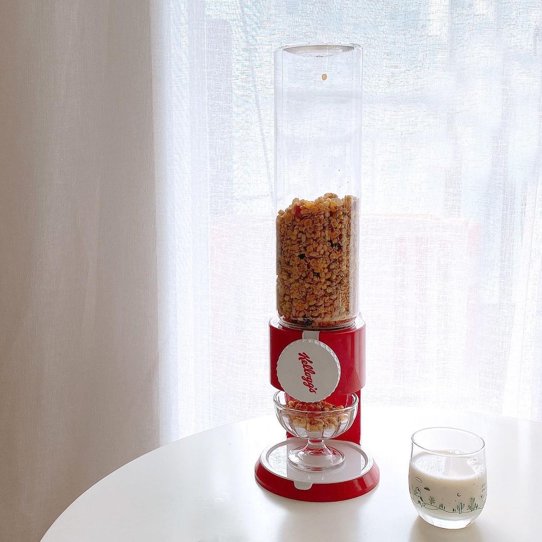 這款麥片機有夠美內~除了放麥片之外,也可以放一些小點心、小餅乾之類,或是家裡有養寵物的捧友們也可以放飼料,用途非~常的給他多樣化!但是台灣目前還沒有販售,可以透過信任的韓國代購平台購入,讓你的早餐時光更加可可愛愛喔♡