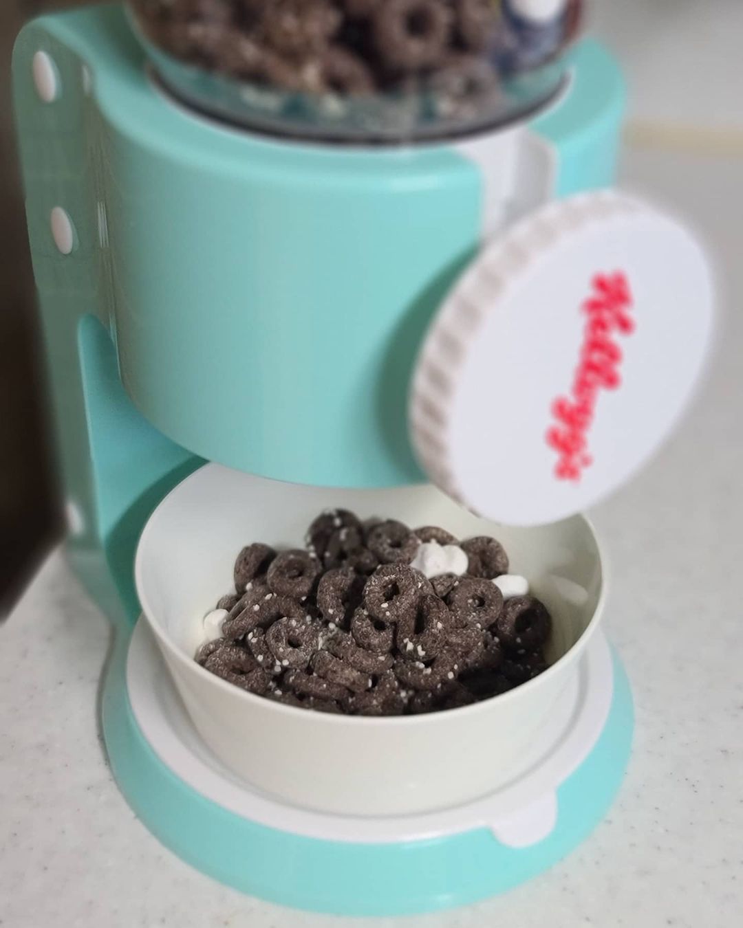▼這台韓國家樂氏限定販售的「馬卡龍色麥片機」,近期在韓國各大平台的討論度都超高!仙女般的顏值配上清爽繽紛的顏色,真的讓人少女心整個牙起來,也太Q惹吧!(激動)除了顏值上線之外,還是你的早餐好幫手~只要把喜歡的穀物麥片倒入至八分滿,要吃的時候轉動下面的按鈕,就會掉出一餐適量的麥片,操作上非常容易,大人小孩絕對都上手!