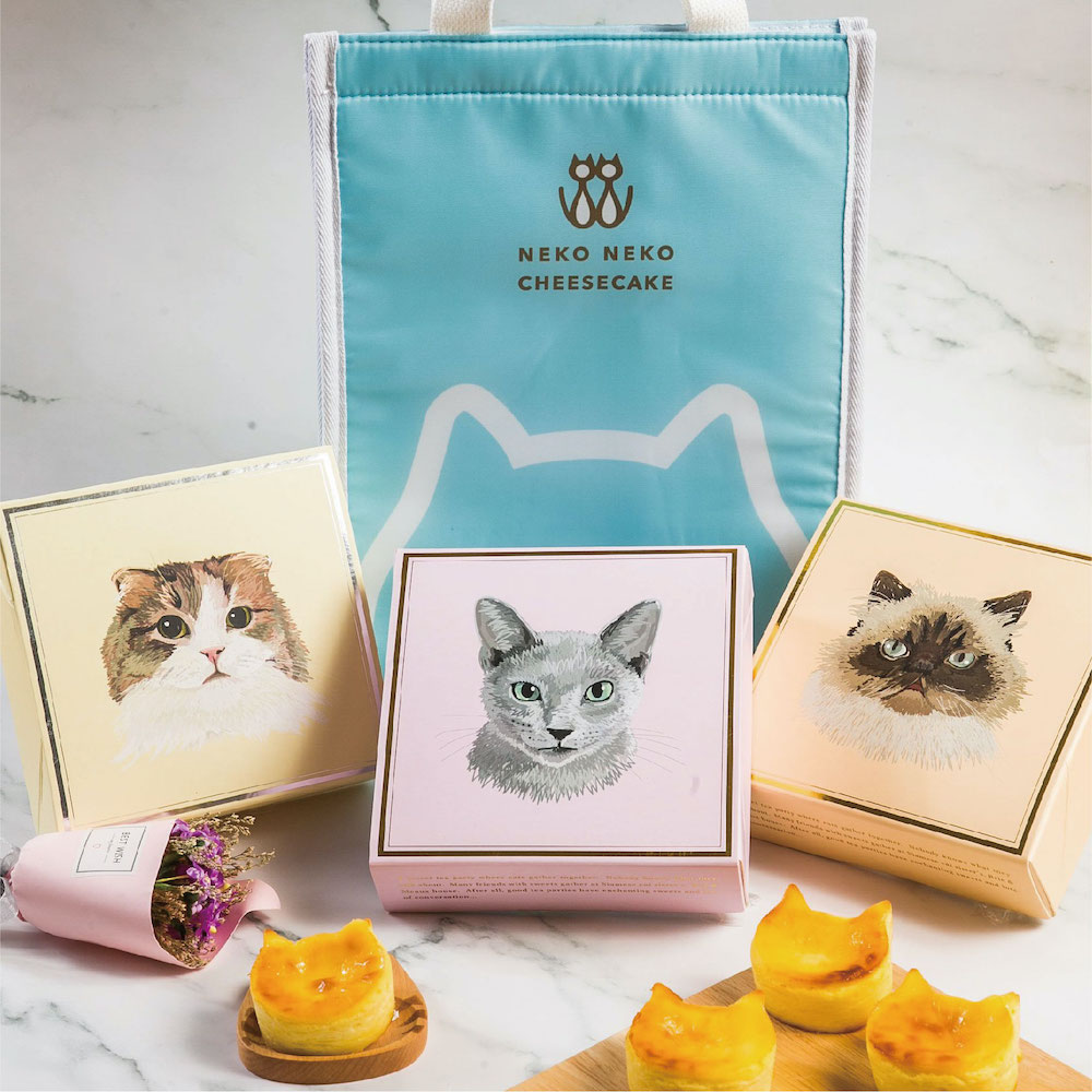 ▼「貓貓起司蛋糕」選用頂級進口澳洲乳酪,香醇的起司奶香入口即化,頂層覆上燒製到恰到好處的焦糖,甜度適中不膩口,除了嚴格把關蛋糕用料及製作過程,「NEKO NEKO CHEESECAKE貓貓起司蛋糕」包裝外盒同樣帶有特色!