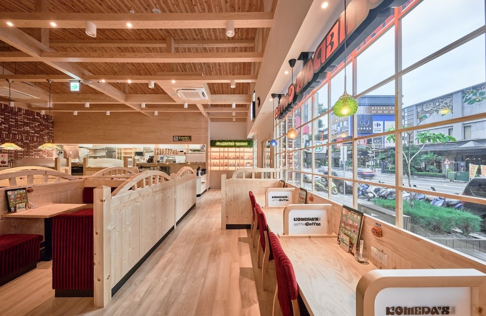 ▼客美多Komeda咖啡的空間設計,整體呈現舒適溫馨路線,藉由原木、磚瓦、吊燈以及傳統拱形窗等元素,營造家的溫暖氣氛;雖說目前不開放內用,但期待未來能讓客人有如回到自家客廳般,在寛敞的絨布紅沙發上放鬆,安心享用咖啡與餐點。