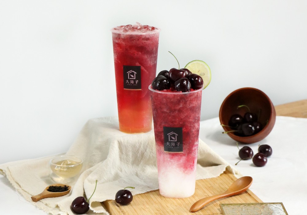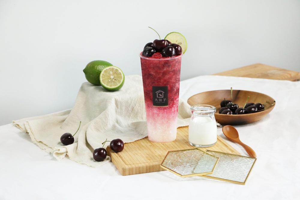 ▼為了滿足櫻桃控的櫻桃需求,大苑子近期的「繽紛水果茶」也加入了新鮮的華盛頓櫻桃,就是要讓喜歡櫻桃的朋友,來到大苑子一次就要帶走三款櫻桃系奢華飲品~(圖為「櫻桃翡翡」與「櫻桃朵朵」。)