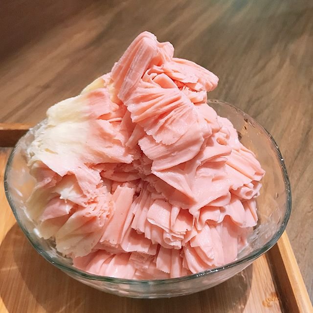 口感獨特到第一口咬下去會不禁讓人皺眉,不是滑嫩豆腐,裡頭質地有點沙沙顆粒感,有些豆香味呢!!