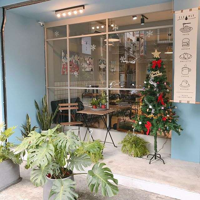 *✏️門口擺了小聖誕樹應景,門外還有綠色植栽和可愛霓虹燈標語 ⠀⠀⠀⠀