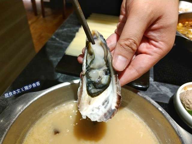 裡面總共有鯛魚片、鮮白蝦、生蠔、花枝漿,蛤蠣跟一整隻的小卷,滿滿的一盆送上來真的超級澎湃的~