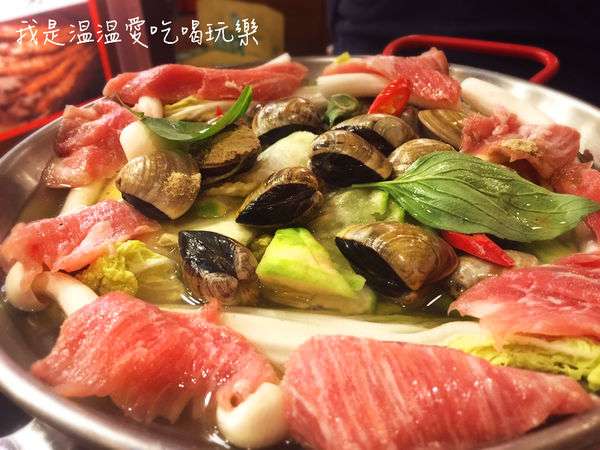 在等待蛤蜊熟透開口的時候,胡椒湯底的香氣擈鼻,搭配青菜一起吃,鮮甜不辣口。
