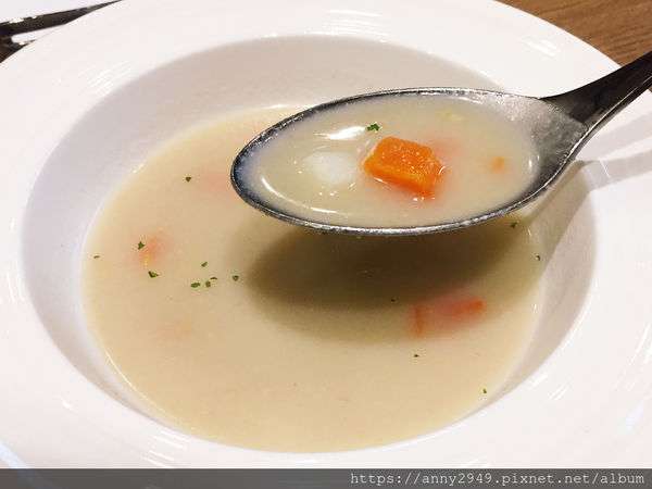 今天的濃湯料是胡蘿蔔與馬鈴薯塊,比較普通一點