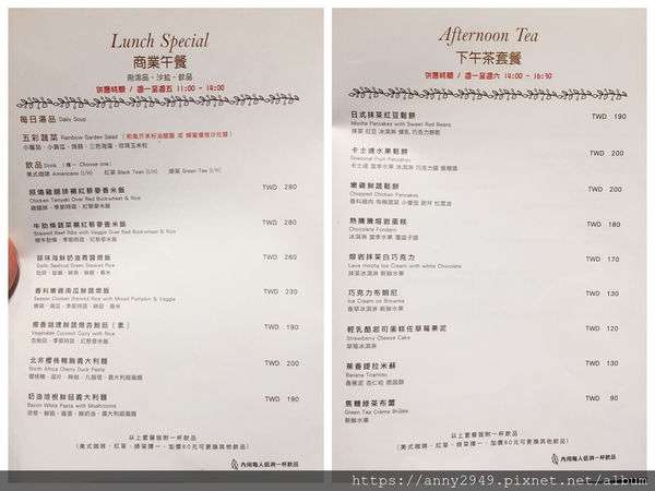 內用低消每人一杯飲品,部分餐點11:00以後 / 14:00~16:30 供應