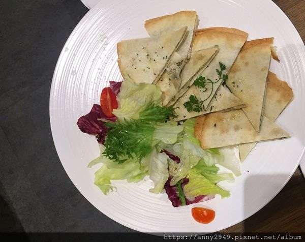 為溫熱的脆餅外酥內軟,嚐的到淡淡麥香,並融合著柔軟的蒙佐瑞拉起司的香氣