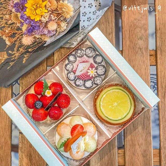 都是可愛的3吋水果塔 買了四個剛好可以湊成一盒 是不是看起來超療癒的 而且送人真的是美到一個不行!大推大推👍🏻