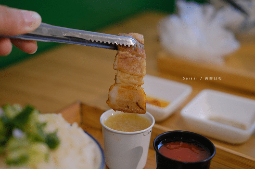 豬肉也選用很不錯的五花肉,吃的時候肉質也很鮮嫩,雖然是用烤的,但是技術火侯也都掌握的不錯~