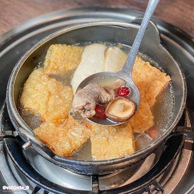 火鍋部分有五種湯底,我選了鮮菇香蒜雞湯鍋,雞湯超好喝 而且燒肉就是要配雞湯啊!不誇張我喝了五碗以上 真的超喜歡😘雞肉非常嫩 而且都是腿的部分 份量也滿多的唷~