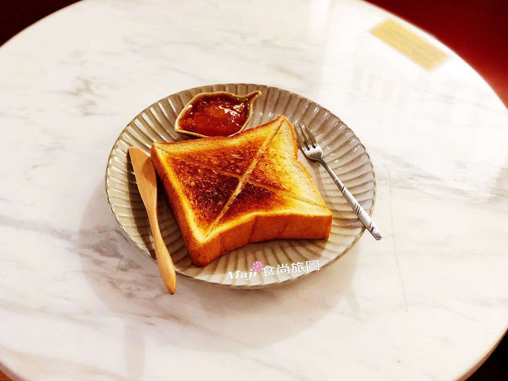 厚片吐司佐柚子醬:酥脆的吐司塗抹上柚子醬,清新的果香味,美味迷人!