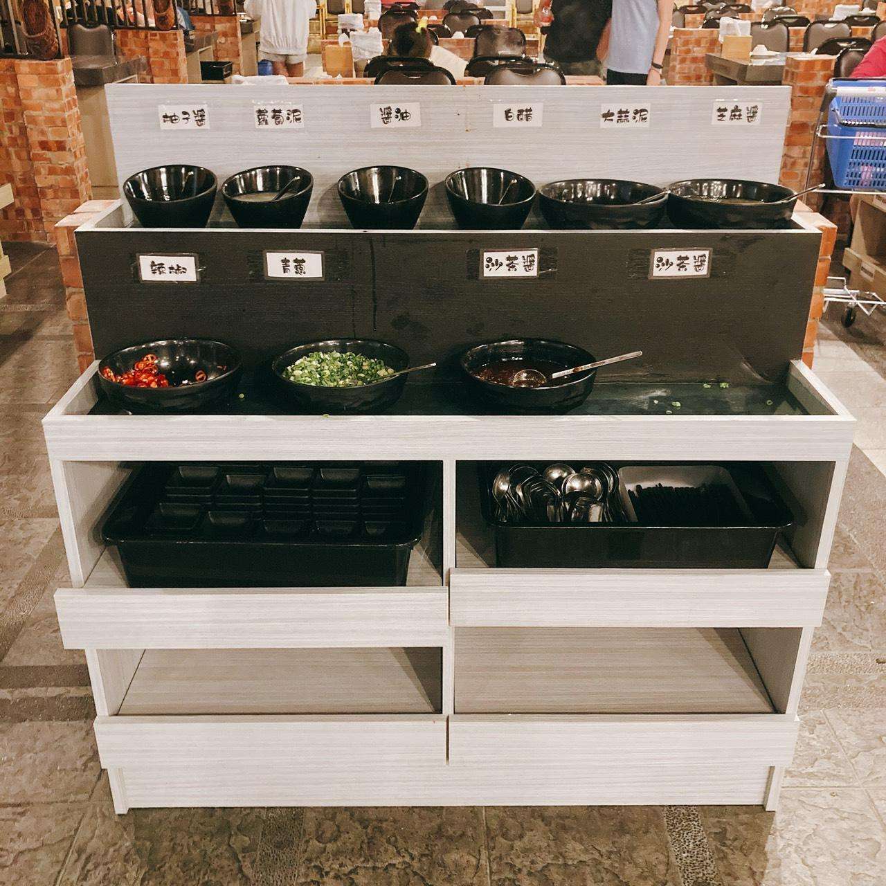 店內中央處提供了飲品、開水及鍋底補充的部分