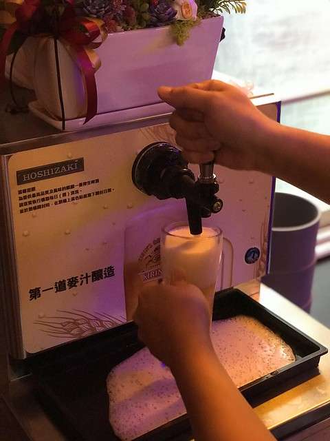 店家專業的手勢馬上就可以擠出泡泡很少的生啤