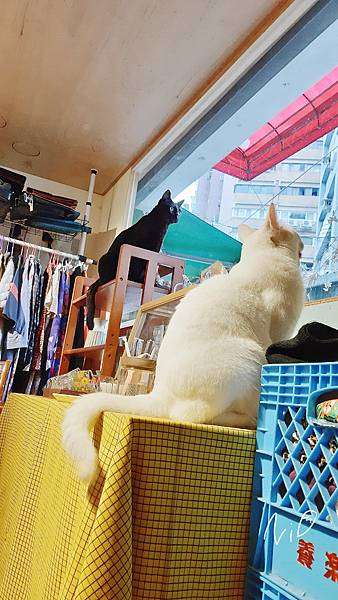還空出一席剛好讓貓貓們可以坐著、觀賞路人的好位