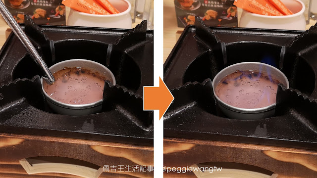 這裡比照日本獨享鍋方式,可以選擇自己涮,或是店家將菜盤內容物煮好端上,再自己涮肉片。因為要拍照,我這次選擇前者方式,光是酒精膏就補充兩次,所以建議還是請餐廳煮好。