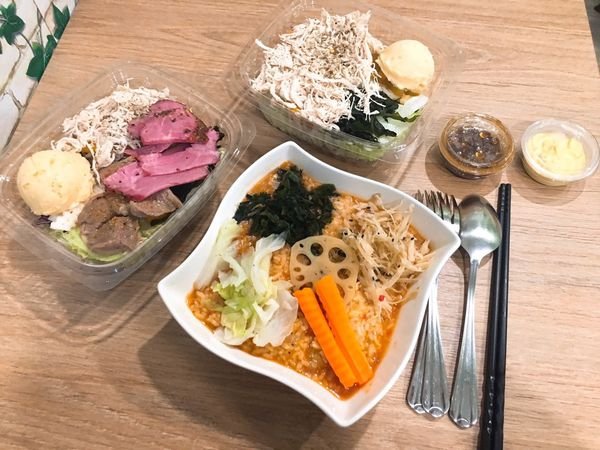 商午目前就是用餐盒型態供應,選項也只有6種台人接受度較高的pasta, 蛤蜊鮮蝦羅勒原本搭配的都是spaghetti,跟老闆娘商請sous-chef幫我換成penne al dante 💗 松露油炒蛋簡單卻美味,主廚親製的抹茶口味麵包好吃爆了,真是認真親力親為的chef👍