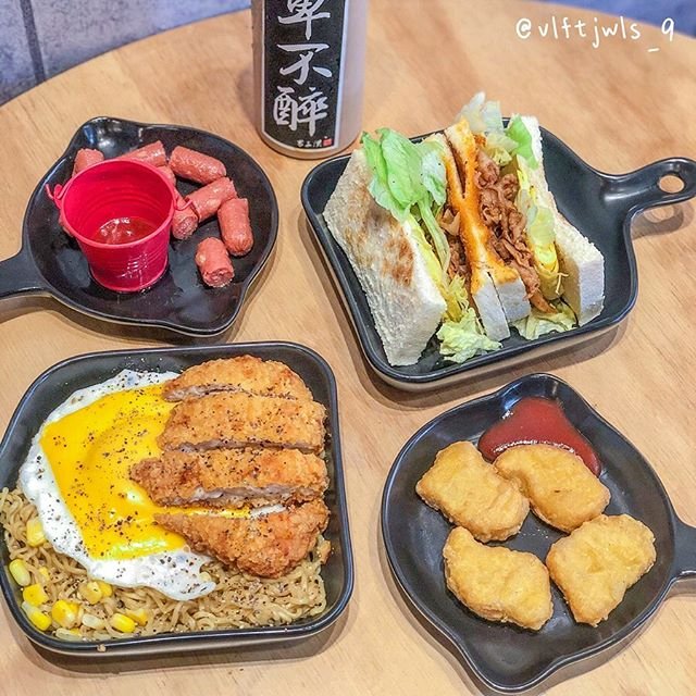 鮮奶西多士、吐司、蛋餅還有鐵板炒麵和丼飯