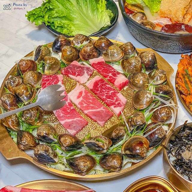 超狂的蛤蜊!完全不手軟欸!還有很大盤的牛小排,原本肉量是200g,只要➕140元就可以升級成肉量300g喔!!