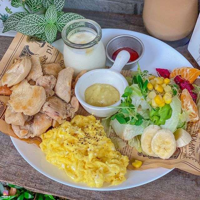 不只雞胸肉、炒蛋也是兩倍還有生菜沙拉跟優格,真的很推薦吃的健康養生的朋友一定會愛上這家!!