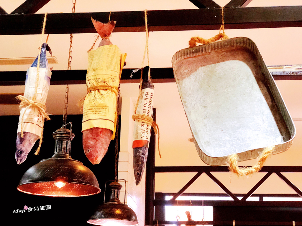 一看到店面就被整個外觀裝潢吸引住,滿滿的海洋風情。貝殼、蝦蟹、船方向盤等裝置其中,彷彿搭乘輪船駛向大海,迎著海風享受海浪的氣息。