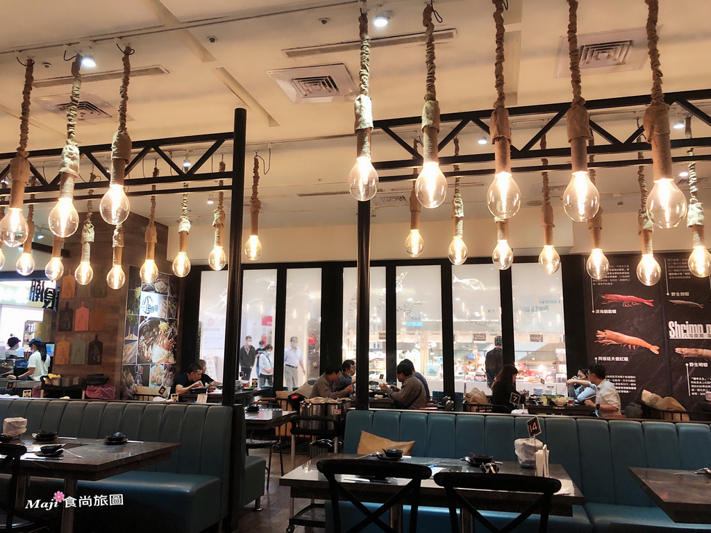 整個內部以時尚海港為創意主題的設計裝潢,有著低調沉穩的風格。燈火通明的燈泡帶來了溫暖。寬敞的座位、流暢的動線、挑高的天花板,整個空間非常舒適自在輕鬆。