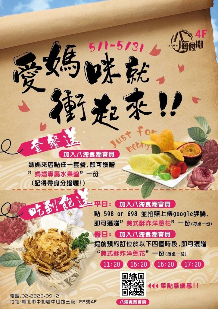 「八海食潮當代鍋物」慶祝五月的溫馨優惠活動,好康多多。很幸運地我們也搭上這一波。